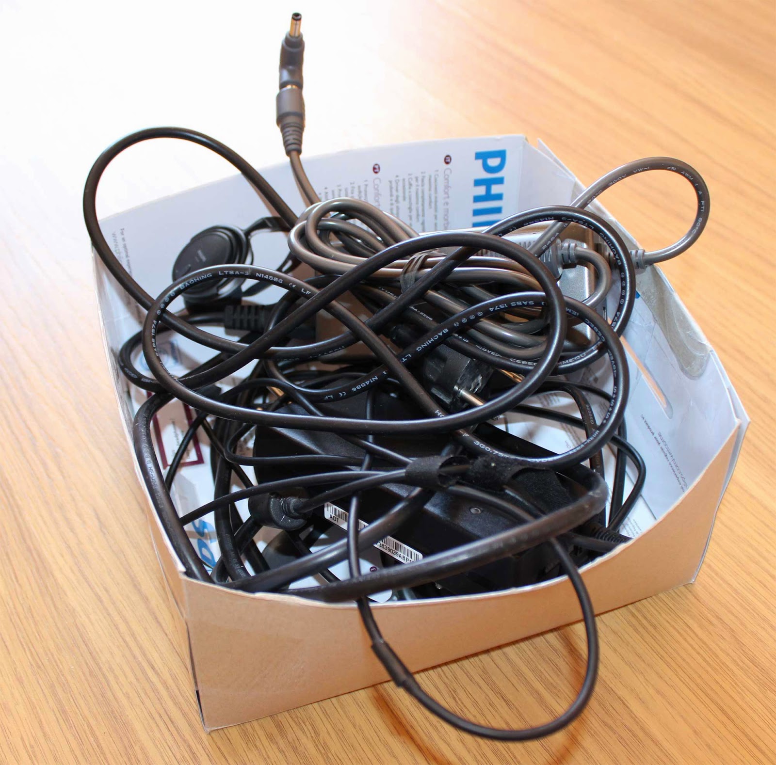 Может быть многим из вас знаком вид коробки, где в кучу собраны все зарядники, которые путаются своими длинными проводами, и найти нужный бывает непростая задача?